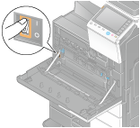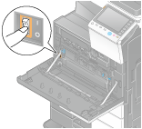 Abra la puerta frontal inferior o la puerta frontal y configure el interruptor de corriente principal en