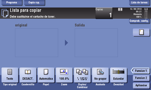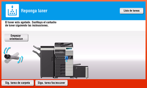 Cuando se acerque el momento de reemplazar un cartucho de tóner, aparece previamente un mensaje de aviso. Prepárese para reemplazar el cartucho de tóner según el contrato de mantenimiento.