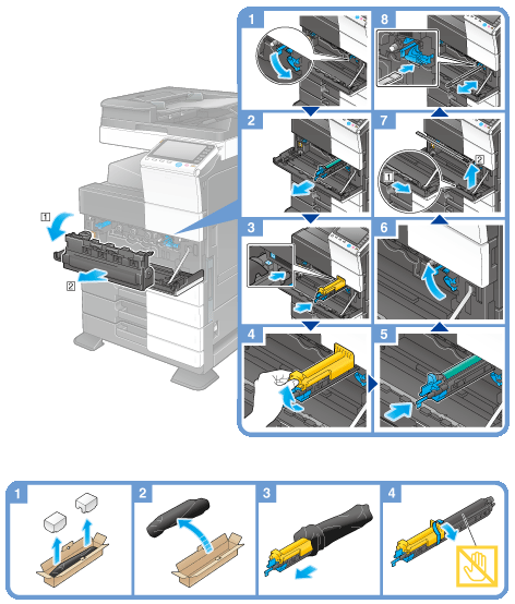 El servicio de asistencia técnica recogerá la unidad de tambor usada. Colóquela en una bolsa de plástico negra y guárdela en una caja vacía.