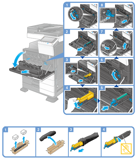 El servicio de asistencia técnica recogerá la unidad de tambor usada. Colóquela en una bolsa de plástico negra y guárdela en una caja vacía.