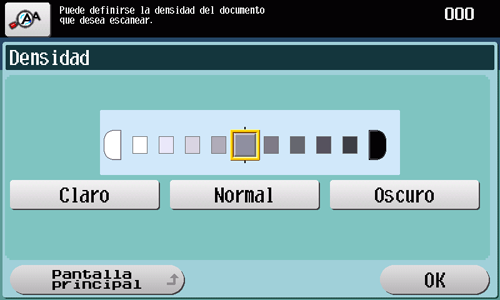 Toque [Config. escaneado] - [Densidad] para ajustar la densidad para escanear el original.
