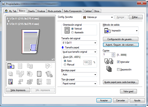 En la ficha [Básico], haga clic en [Autent./Seguim. de volumen...].