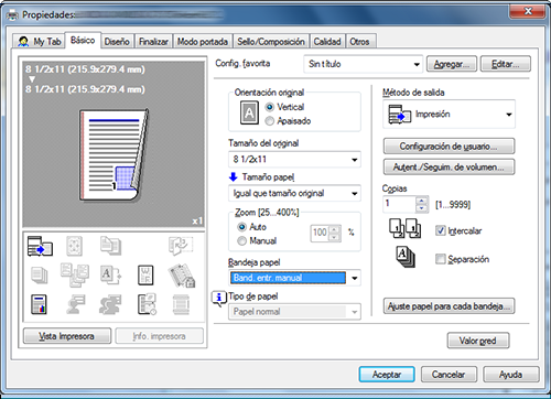 En [Bandeja papel] en la ficha [Básico], seleccione una opción diferente a [Auto].