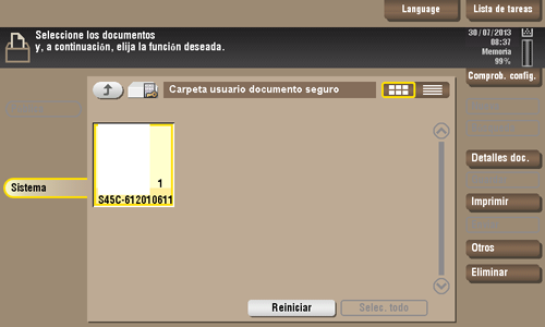El documento de impresión segura se imprime y elimina de la carpeta de usuario de impresión segura de forma automática.