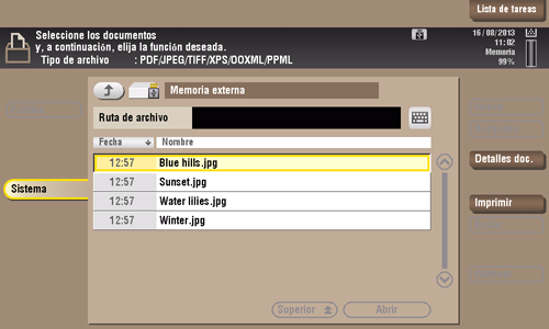 Seleccione un archivo para imprimirlo y, a continuación, toque [Imprimir].