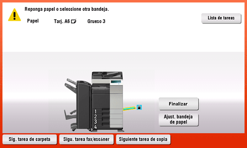 Si la configuración de papel es diferente, aparece la siguiente pantalla. Al tocar [Finalizar] se inicia la impresión.