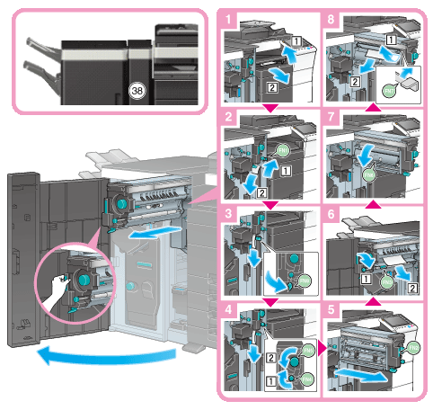 Cuando mueva la unidad de plegado en Z ZU-606, sujétela solo por su asa. De lo contrario, la mano o los dedos pueden quedar atrapados en la máquina.