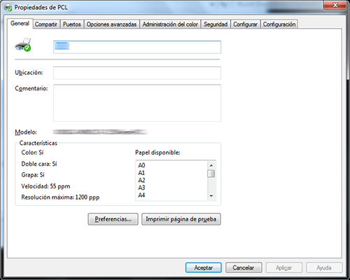 En la ficha [General], haga clic en [Imprimir página de prueba].