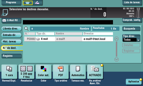 Toque [Búsqueda] para mostrar los resultados de la búsqueda. Seleccione un destino de la lista.