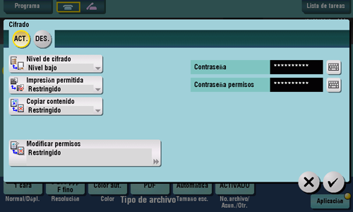 Si selecciona [PDF] o [PDF compacto] como formato de archivo, podrá cifrar los archivos PDF.