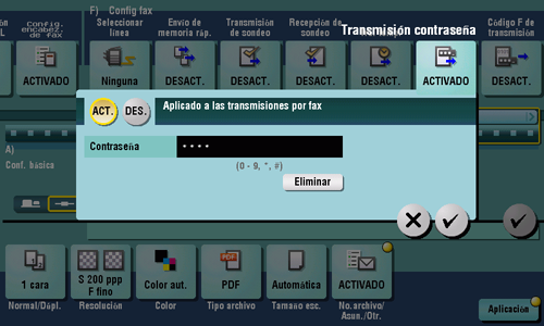 [ACT.]/[DES.] | Seleccione [ACT.] para especificar Transmisión contraseña. |