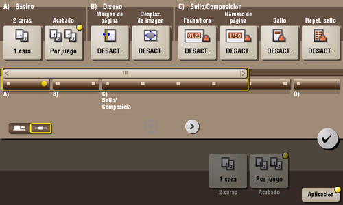 [Sello/Composición] | Añade un número de página y sellos a cada hoja de papel de impresión. |