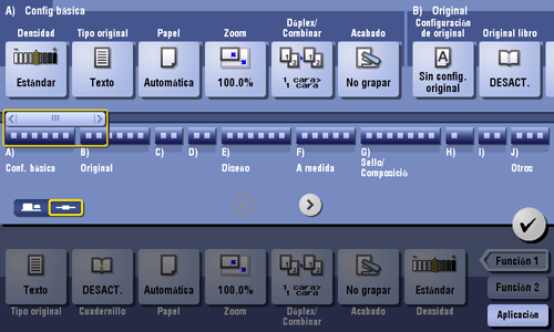 [Diseño] | Especifique el diseño de copia; por ejemplo, para copiar empleando un orden de páginas como el empleado en un cuadernillo, y copiar una imagen del original de forma repetida. |