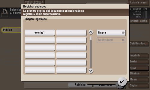 Almacenar archivo como imagen de superposición. Una vez registrada, puede componer una imagen de superposición en el original durante la copia o impresión.