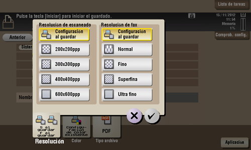 Seleccione una resolución del archivo de documento al guardarlo en una memoria externa.