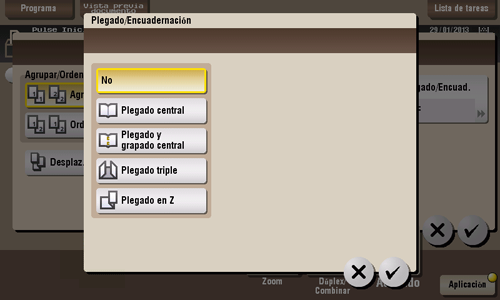 Son necesarias la unidad de acabado FS-535 y la unidad de plegado en Z ZU-606 (solo para bizhub 554e).