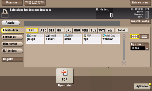 Especifique el destino y otros ajustes para enviar un archivo de la carpeta de usuario.