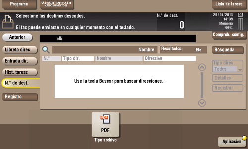 Toque [Búsqueda] para mostrar los resultados de la búsqueda. Seleccione un destino de la lista.
