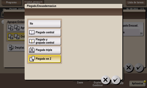 • Para utilizar la función Plegado en Z, son necesarias la unidad de acabado FS-535 y la unidad de plegado en Z ZU-606 (solo para bizhub 554e).