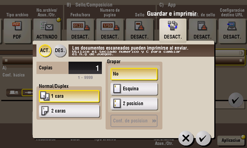 [ACT.]/[DES.] | Seleccione [ACT.] para enviar e imprimir al mismo tiempo. |