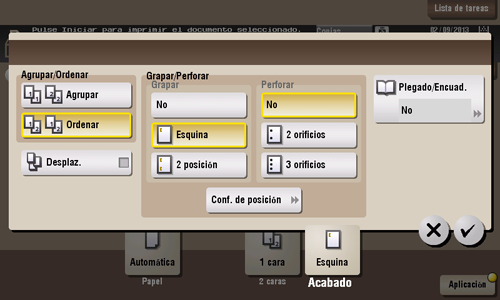 La unidad de acabado opcional es necesaria para utilizar la función de grapado.