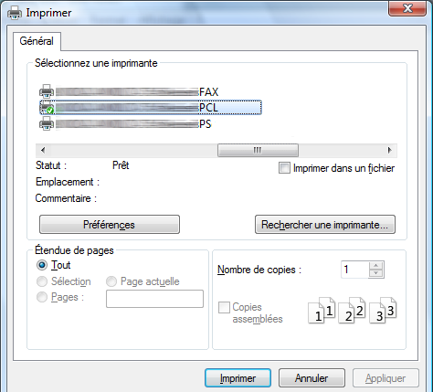 La boîte de dialogue [Imprimer] varie en fonction de l'application.
