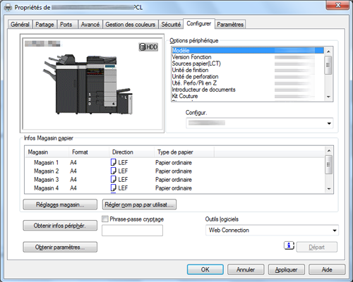 Si communication OpenAPI est chiffré par SSL et que les informations sur le périphérique peuvent être automatiquement obtenus depuis le pilote d'imprimante, la phrase-code de cryptage peut être obtenue de la part de cette machine. Pour des détails sur la procédure de cryptage des communications OpenAPI avec SSL, voir ici.