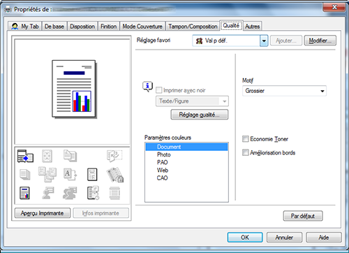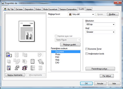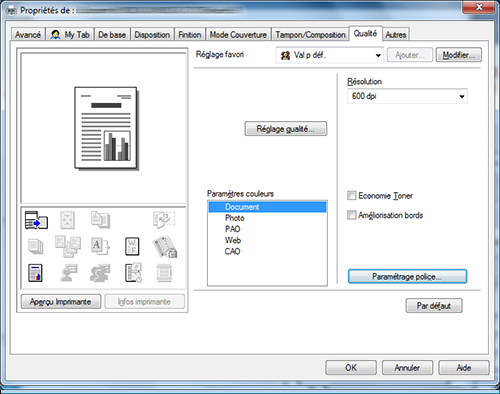 Les éléments qui peuvent être spécifiés dépendent de votre pilote d'imprimante.