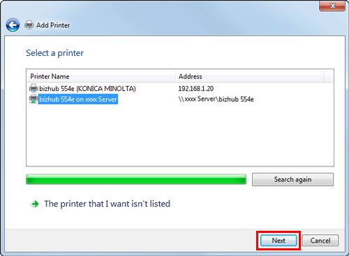 Sélectionnez une imprimante dans "\\name-NetBIOS\nom-service-impression".