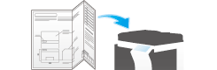 Il est possible de numériser une double page d'un livre ou d'un catalogue ouverts et de la traiter comme deux pages distinctes ou la traiter comme une seule et unique page. Si vous placez un livre ou un catalogue sur la vitre d'exposition, ce n'est pas la peine de refermer le chargeur ADF pour procéder à la numérisation.