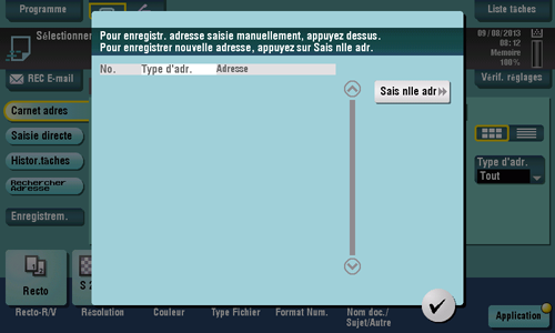 L'enregistrement d'une destination souvent utilisée sur cette machine vous évite d'avoir à la saisir à chaque fois que vous envoyez des données. Une destination enregistrée sur cette machine s'appelle un "Carnet d'adresses".