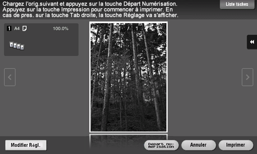 Une fois que tous les originaux ont été numérisés, tapez sur [Imprimer] ou appuyez sur la touche Départ.