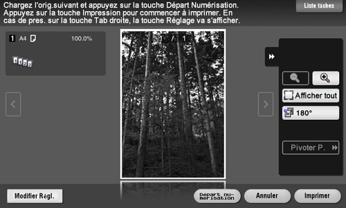 Vérifiez l'aperçu et faites pivoter la page ou changez les réglages selon les besoins.
