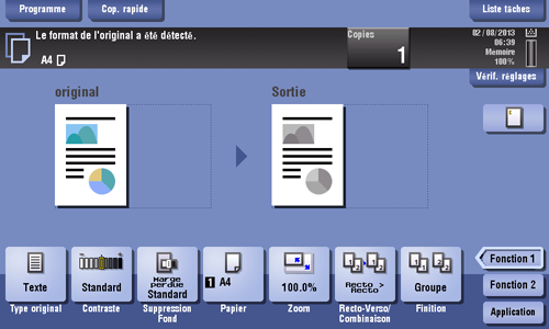 Vous pouvez vérifier l'image terminée d'une copie en la visualisant sur l'écran tactile avant de lancer la copie.