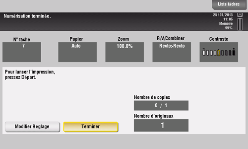 Chargez le lot suivant de l'original et appuyez sur la touche Départ.