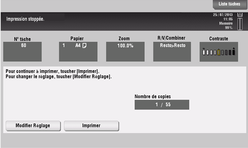 Pour lancer la copie, tapez sur [Impression] ou appuyez sur la touche Départ.