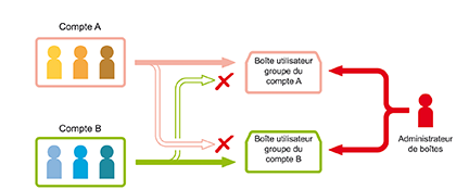Si Compte Département est activé, les utilisateurs ne peuvent accéder qu'au groupe auquel ils appartiennent. Les utilisateurs d'autres départements ne peuvent pas accéder à cette boîte.