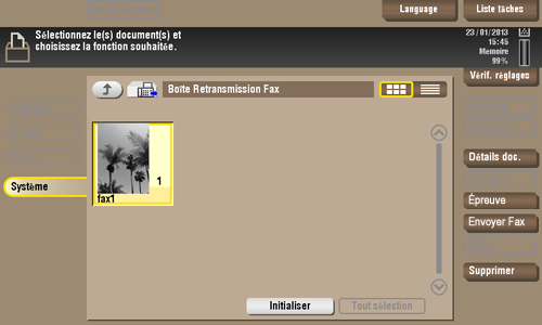 Sélectionnez un fax, puis tapez sur [Épreuve].