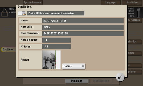 Vous pouvez tapez sur [Détails] ou sur une image miniature pour afficher un aperçu de l'image du fichier.