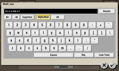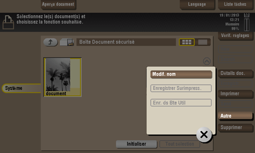 Sélectionnez un fichier, puis tapez sur [Autre] - [Modif. nom]. Maintenant, vous pouvez renommer le fichier. Entrez un nouveau nom sur l'écran tactile.