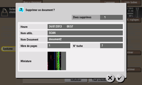 Sélectionnez un fichier, puis tapez sur [Supprimer]. Le fichier est supprimé. Vous pouvez sélectionner plusieurs fichiers et les supprimer simultanément. Vérifiez les détails du fichier, puis tapez sur [Oui].