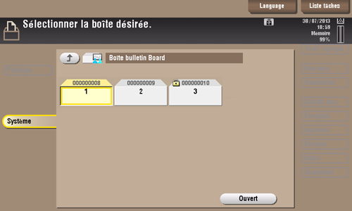 Sélectionnez la boîte utilisateur souhaitée, puis tapez sur [Ouvert].