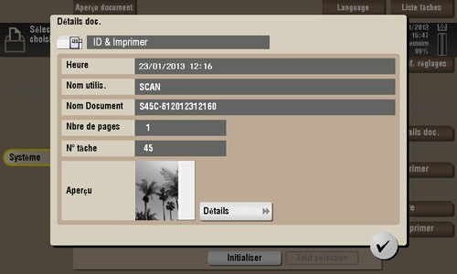 Vous pouvez tapez sur [Détails] ou sur une image miniature pour afficher un aperçu de l'image du fichier.
