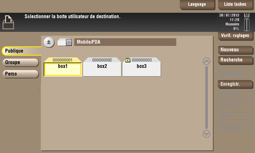Sélectionnez une boîte utilisateur dans laquelle enregistrer un fichier, puis tapez sur [Enregistr.].