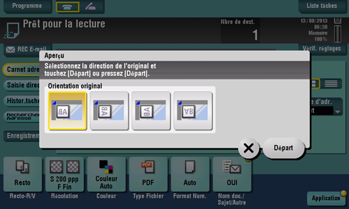 Tapez sur [Départ] ou appuyez sur la touche Départ.