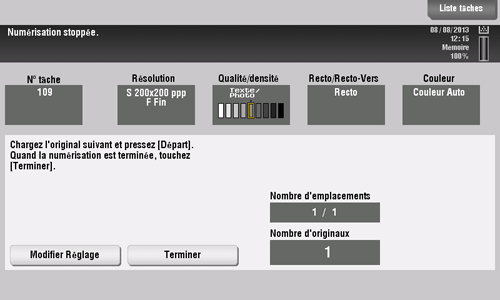 Lorsque la numérisation de tous les originaux est terminée, tapez [Finition] et appuyez sur la touche Départ.