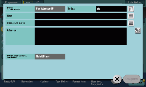 Vous pouvez aussi enregistrer des destinations fax sur adresse IP avec Web Connection. Pour des détails, voir ici.
