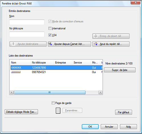 • Lorsque vous sélectionnez un destinataire dans le répertoire téléphonique de l'ordinateur, cliquez sur [Ajout du répert. tél...]. Pour des détails, voir ici.