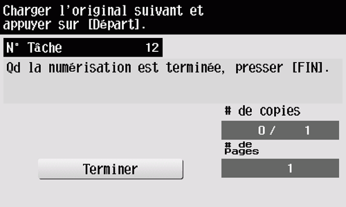 Chargez le lot suivant de l'original et appuyez sur la touche Départ.