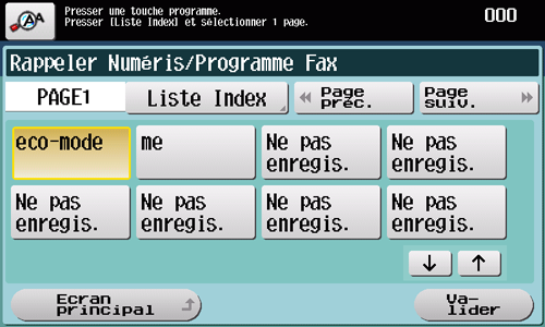 Le programme numérisation/fax doit être enregistré à l'avance à l'écran normal. Pour des détails sur comment enregistrer, voir ici.